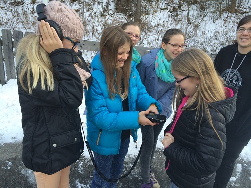 Außervillgraten hatte an diesem Vormittag außerdem eine höchst interessante Geräuschkulisse zu bieten. Mit Aufnahmegeräten und Kopfhörern ausgestattet, schlenderten die Schüler und Schülerinnen durch das Dorf. Neben dem Piepsen an der Geschäftskasse waren auch eine lustige Geräusche, wie die tiefe Stimme des Skilehrers Ossis, beim Endergebnis zu hören.