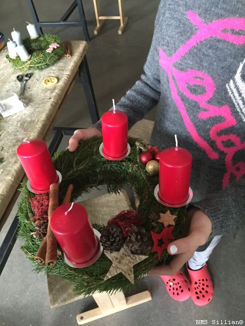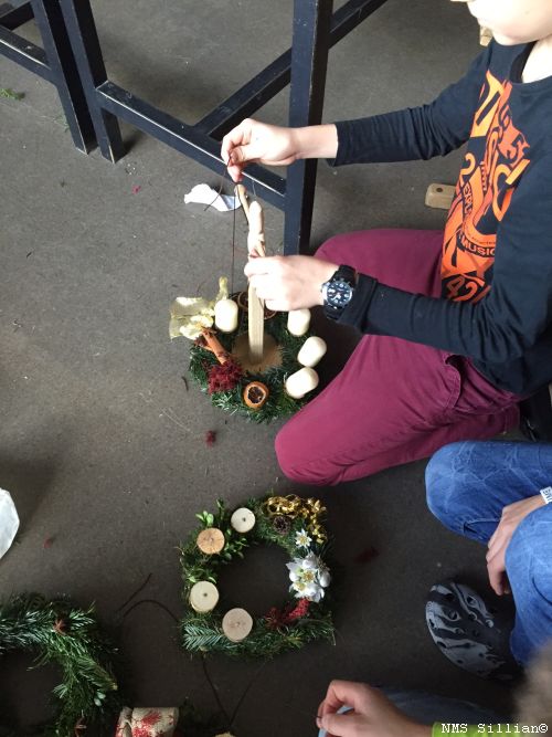 Adventkränze selber winden und Halterung aus Holz anfertigen.