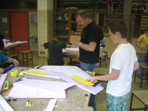 Das Anbringen von Verstärkungsstäben wird vom Lehrer gewissenhaft kontrolliert.