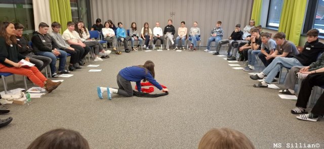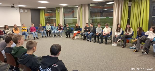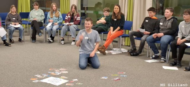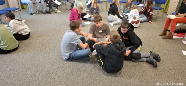 Anhand eines Comics, in welchem auf das Thema Außenseiter in der Schulkasse eingegangen wurde, wurden sie auf den Umgang mit Mitschülern und generell Menschen sensibilisiert. Möglichkeiten zur Hilfe und Lösungswege zur Verbesserung einer Situation wurden in Teams ausgearbeitet und gemeinsam besprochen.