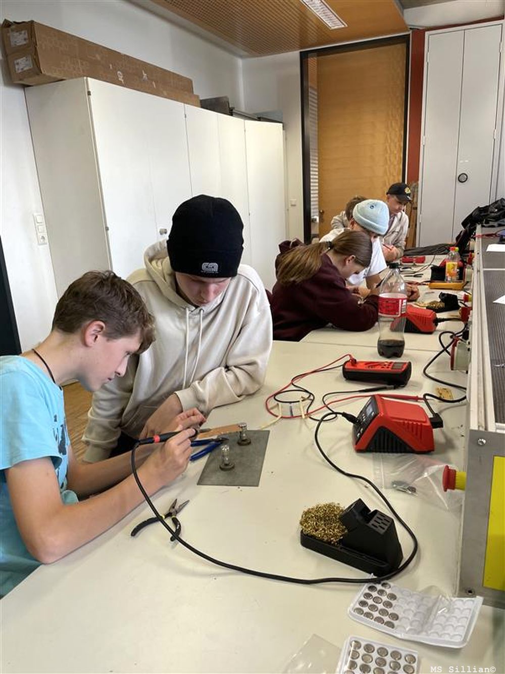 Dabei lernten sie, wie man eine Platine lötet und elektronische Bauteile wie Widerstände richtig einsetzt. Außerdem bekamen die Schüler:innen einen Einblick in die CAD-Software und die CNC-Maschine.