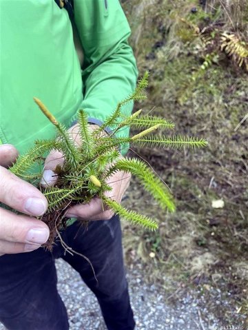 Im Anschluss wurde der Bärlapp genauer untersucht. In der Klasse führten die Kinder spannende Experimente mit Bärlappsporenpulver durch:
