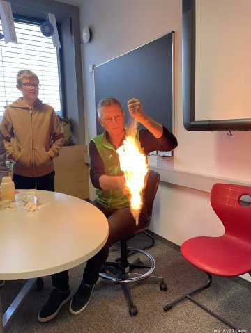 - Schließlich demonstrierte ein Versuch die hohe Entzündlichkeit des Pulvers.