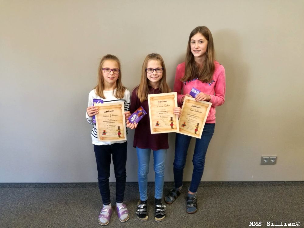Bei den dritten Klassen gab es zwei Sieger durch Punktegleichheit: Katharina Bachlechner und Lea Lanser. Thomas Gutwenger belegte den dritten Platz.