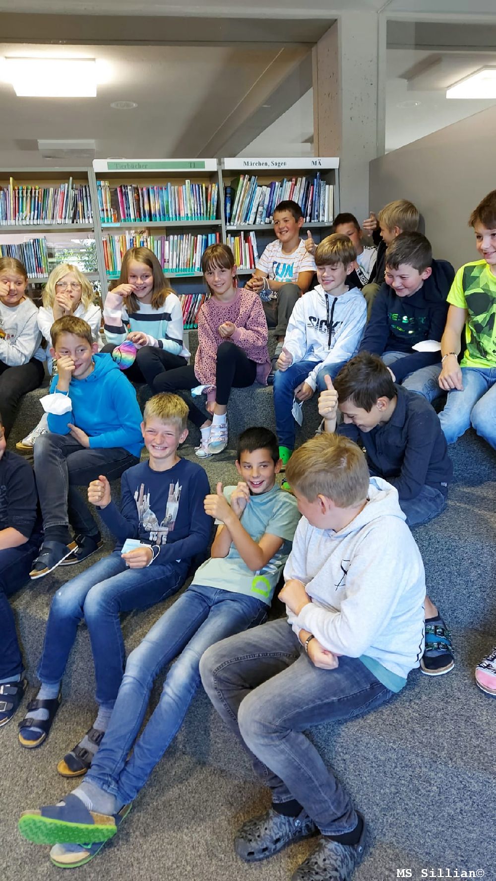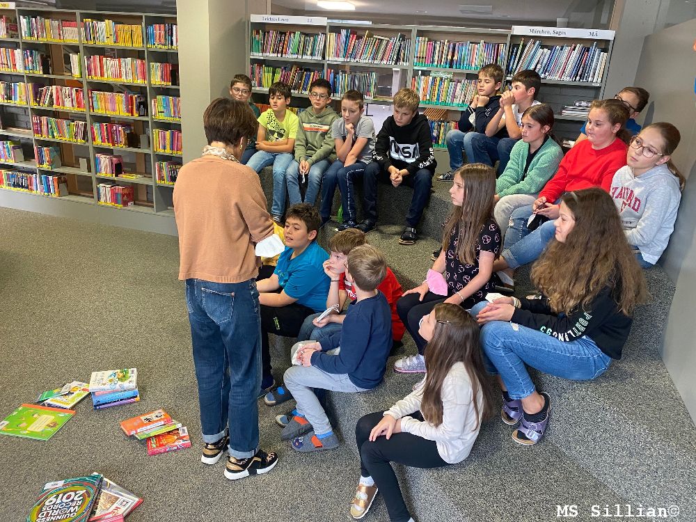 Damit sie sich in der Bücherei zurechtfinden, bekamen die Kinder der ersten Klassen eine Einführung. Auf spielerische Art wurde das Alphabet geübt, die Systematik kennengelernt und der Verleihmodus erklärt.