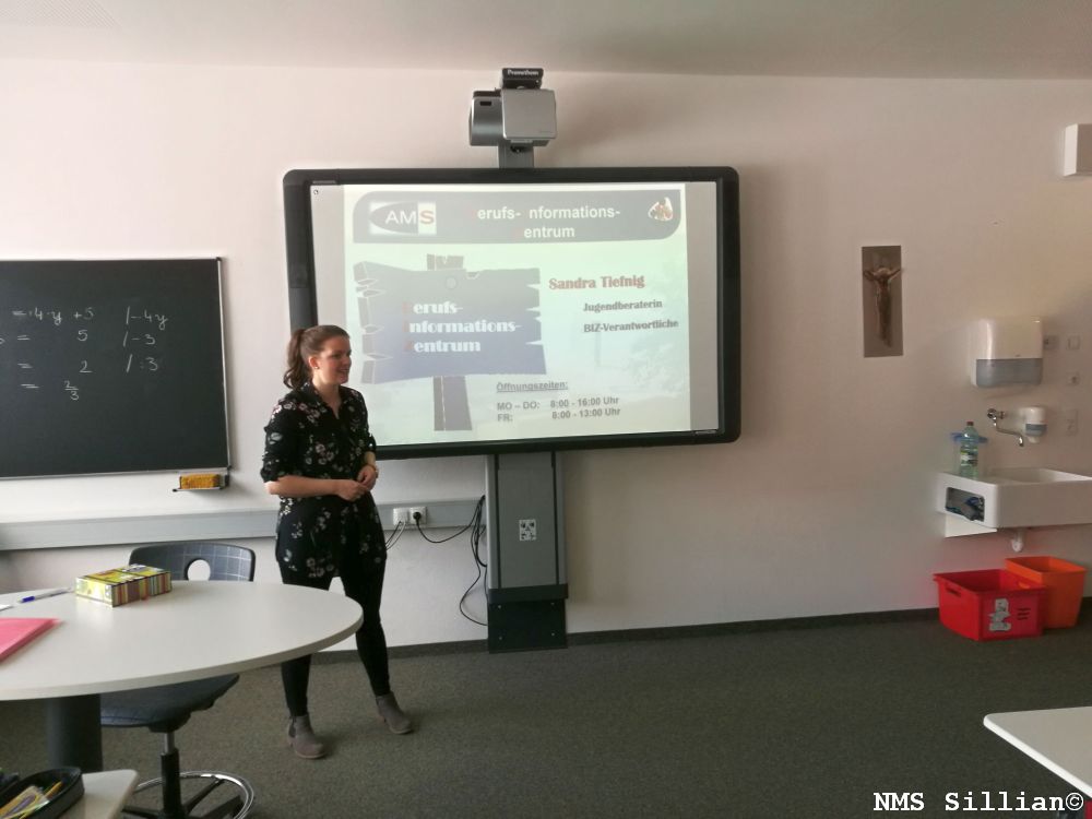 Frau Tiefnig Sandra, Bildungs- und Berufsberaterin vom AMS und BIZ, informiert unsere 3. Klassen über Berufe und Ausbildungsmöglichkeiten. Die Schülerinnen und Schüler erfahren Wichtiges über den Lehrberuf, über die Kriterien für die Auswahl von Lehrlingen und bekommen auch wertvolle Tipps für ein Bewerbungsgespräch.