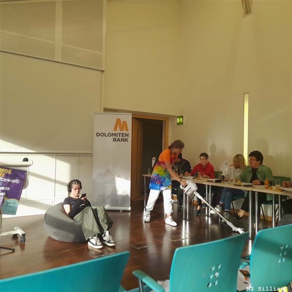 Mit einem kurzen Sketch aus dem Alltag ihres Lebens veranschaulichten Verena Mair (4m) und Nathalie Wurzer (4m) die Konflikte zwischen Eltern und Jugendlichen. Gekonnt und mit Humor beantworteten die beiden auch die Juryfragen und holten sich mit der authentischen Darstellung den Bezirkssieg.