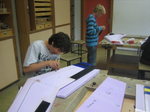 Die aus Kunststoff ausgeschnittenen Rohmodelle werden nun von unseren Schülern nachbearbeitet.