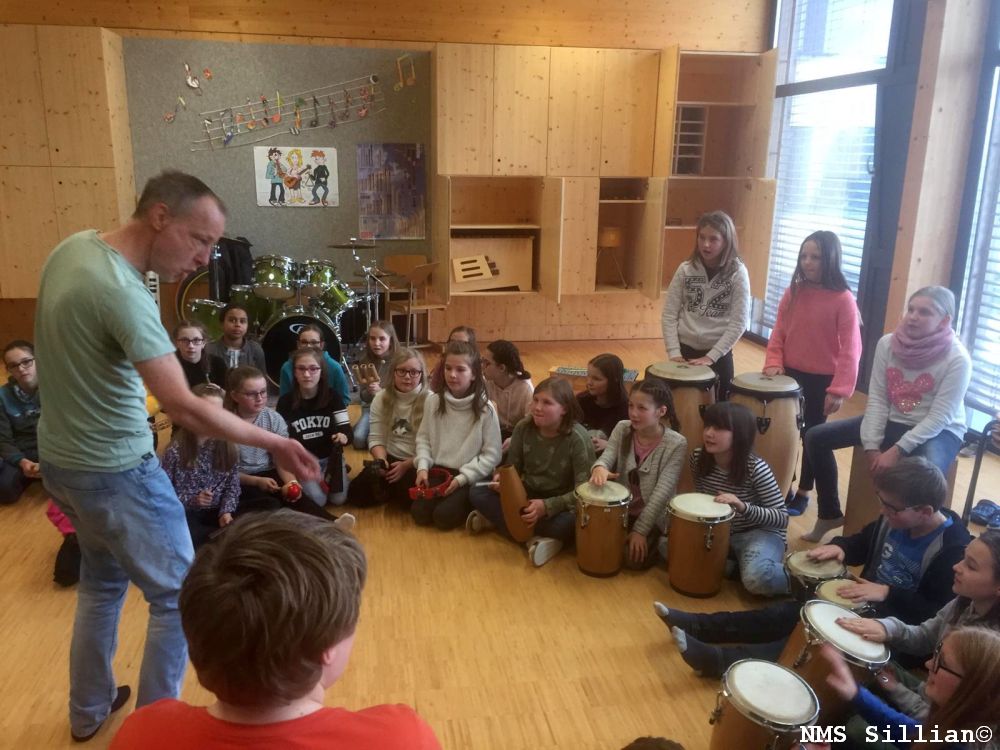 Am Freitag, 1. Februar 2019 fand für die Musikschwerpunktklassen 1m und 2m ein toller Rhythmusworkshop mit Andreas Mayr statt. Dabei wurden Rhythmen mit Bodypercussion erarbeitet und anschließend auf Rhythmusinstrumente übertragen. Unterstützt wurde der Workshop durch die Tiroler Kulturservicestelle.