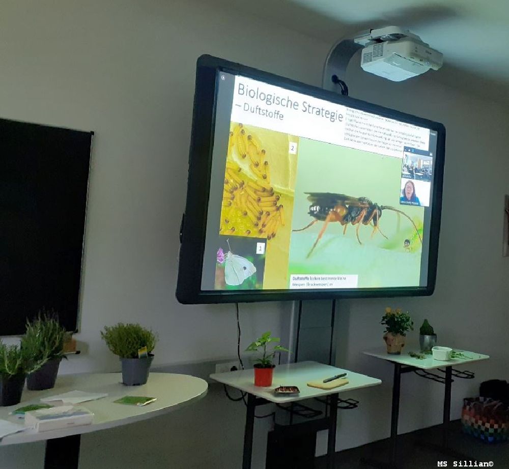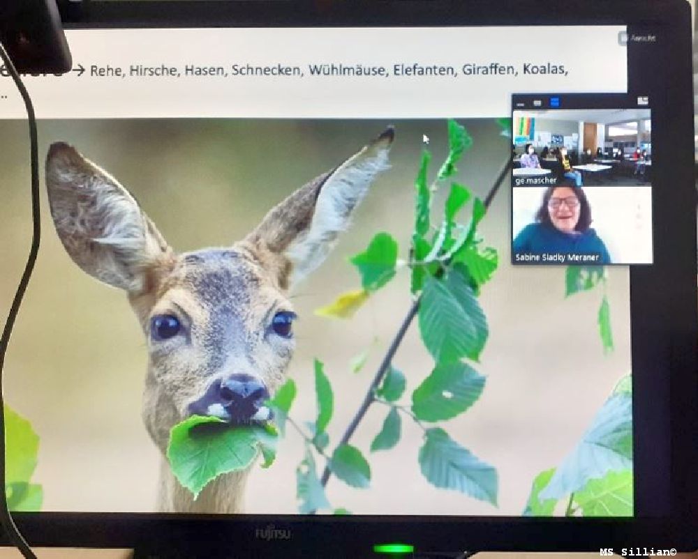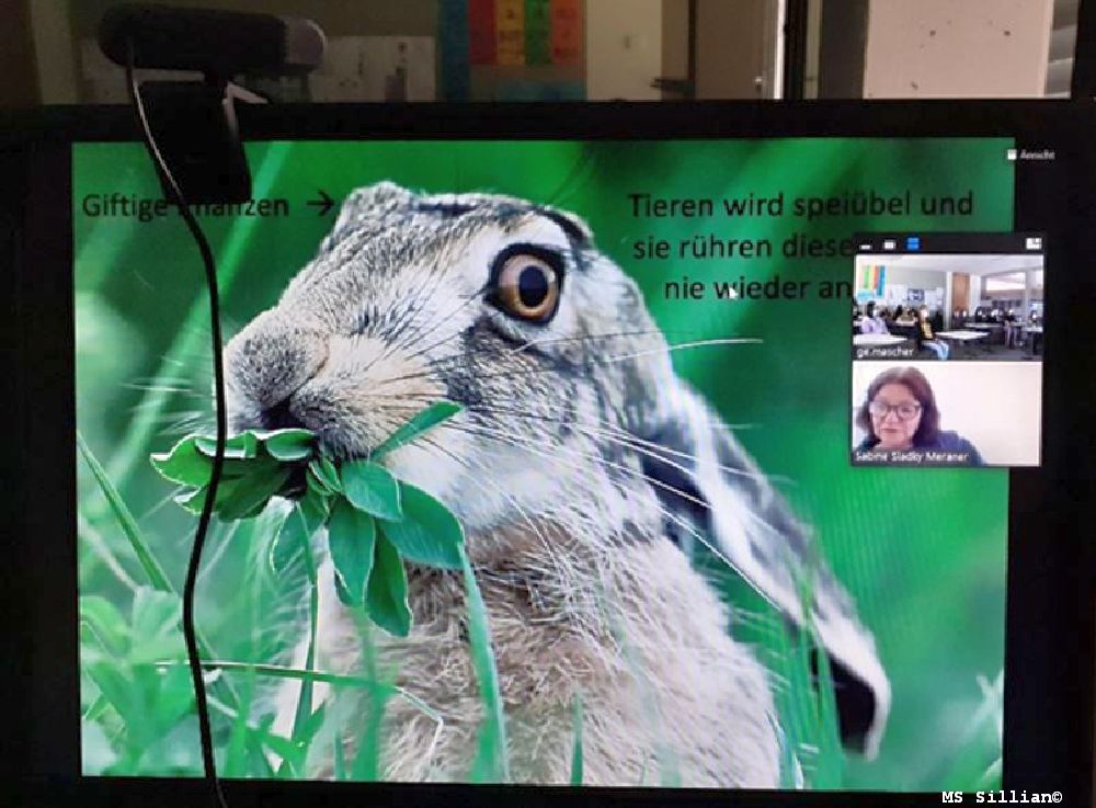 Die Referentin, Frau Sabine Sladky-Meraner, schickte uns einen Zoom-Link und so folgten wir ihren Ausführungen im Klassenzimmer, während sie in ihrem Büro in Innsbruck präsentierte!