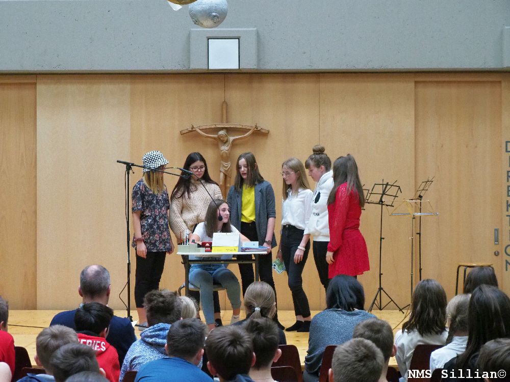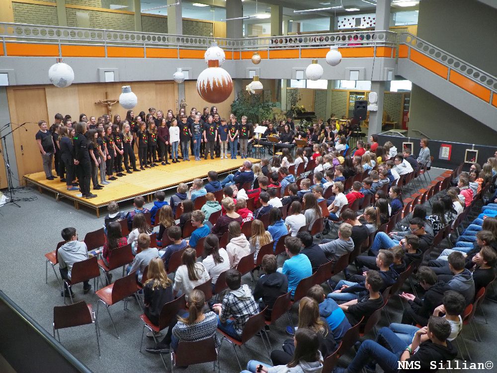Das Weihnachtskonzert, welches am 19. Dezember 2019 in der Aula unserer Schule stattfand, bot auch heuer wieder ein abwechslungsreiches Programm. Nach der Eröffnung mit einem Musikstück der Bläsergruppe wechselten sich Klassenchöre, Instrumentalensembles, Schulchor und Schulorchester mit instrumentalen und vokalen Beiträgen ab. Nicht fehlen durften auch dieses Jahr zwei kleine szenische Weihnachtsspiele, welche die ZuhörerInnen zum Schmunzeln brachten. Die SchülerInnen des Musikschwerpunkts und die SchülerInnen, welche die Theaterstücke einstudierten, freuten sich gemeinsam mit ihren Lehrpersonen über den großen Applaus des Publikums.