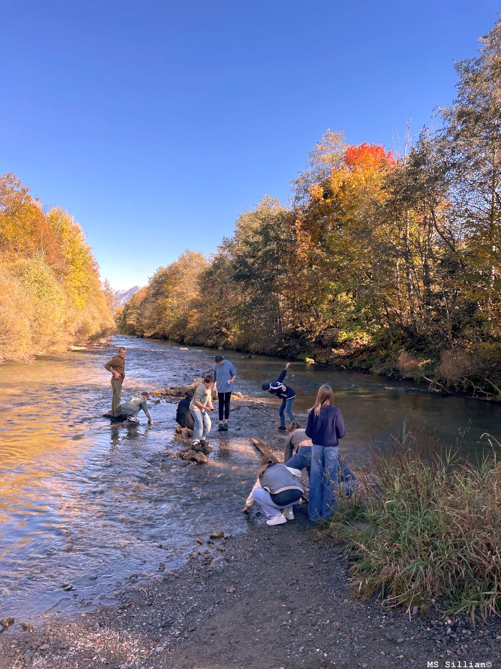 Mit Pinseln und Bechern ausgestattet, wurden unter Steinen im Flussbett spannende Kleinstlebewesen entdeckt – darunter Eintagsfliegen, Köcherfliegenlarven, Steinfliegenlarven, Strudelwürmer und sogar Larven der Kriebelmücke. Diese sogenannten Zeigerorganismen lassen Rückschlüsse auf die Wasserqualität zu – und die war ausgezeichnet!