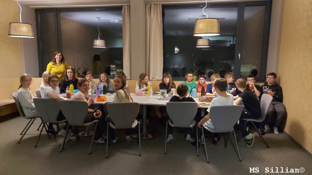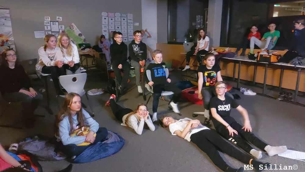Am Freitag, den 18. März trafen am Abend die 20 hochmotivierten Hobby-Detektive, bepackt mit Schlafsack, Decken und Jause in der Schule ein. Nachdem sie sich in ihren Detektiv-Büros eingerichtet hatten, sich einen Namen gegeben und ein passendes Türschild gezeichnet hatten, konnte der Krimispaß beginnen.