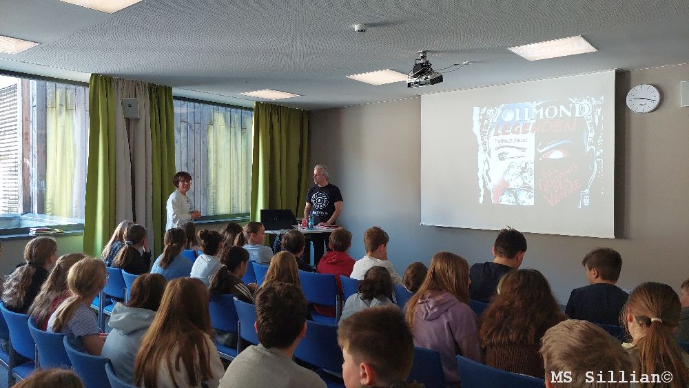 Der gebürtige Lienzer Matthias Bauer stellte für die Kinder der ersten und zweiten Klassen sein neuestes Buch „Vollmondlegenden: Das Geheimnis der Vampire“ vor. Dabei geht es um eine ganz besondere Bibliothek, die nur bei Vollmond betreten werden kann. Felix, Emily, Daniel und Mila werden in die fantastische Welt der Vollmondbibliothek buchstäblich hineingesogen und finden so jede Menge über Vampire heraus. Dieses Wissen werden sie bald dringend benötigen, wenn in ihrer Stadt die unheimlichsten Dinge geschehen.